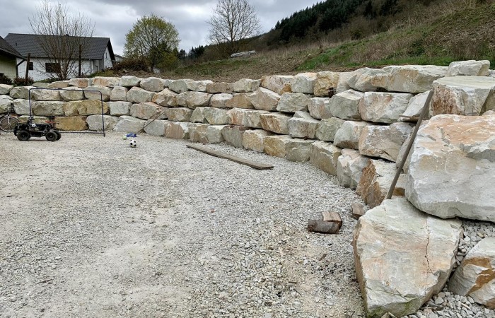Herstellung von Natursteinmauern mit eigenen Findling Steinen oder oder Beispielsweise mit Winkelsteinen.
